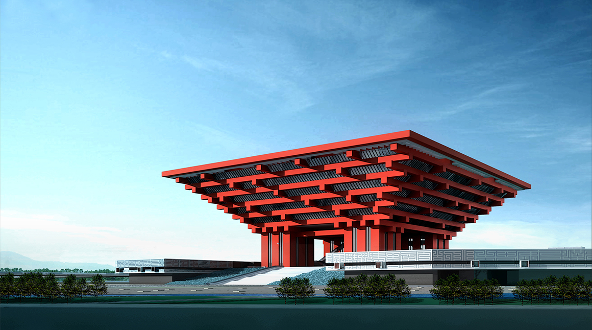 2010年上海世博會(huì)中國(guó)國(guó)家館,以城市發(fā)展中的中華智慧為主題,表現(xiàn)出了“東方之冠,鼎盛中華,天下糧倉(cāng),富庶百姓”的中國(guó)文化精神與氣質(zhì)。