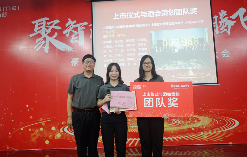 在豪美新材申報(bào)上市和掛牌儀式過程中,有這樣?群可敬的豪美人,鍥而不舍、團(tuán)結(jié)奮斗,為成功登陸A股市場(chǎng)做出了應(yīng)有的貢獻(xiàn),同時(shí)也為我們呈現(xiàn)了?個(gè)完美的上市儀式及酒會(huì),為上市活動(dòng)增添了?道亮麗風(fēng)景,也有了“最佳戰(zhàn)斗天團(tuán)”的稱號(hào)。