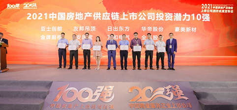 正值上市一周年,豪美新材憑借專業(yè)的技術(shù)服務(wù)、優(yōu)質(zhì)的產(chǎn)品及強大的品牌影響力,在基于對房地產(chǎn)供應(yīng)鏈上市公司投資潛力維度的研判中脫穎而出,被評選為“2021中國房地產(chǎn)供應(yīng)鏈上市公司投資潛力10強”企業(yè),也是鋁型材行業(yè)中唯一一家獲此殊榮的企業(yè)。